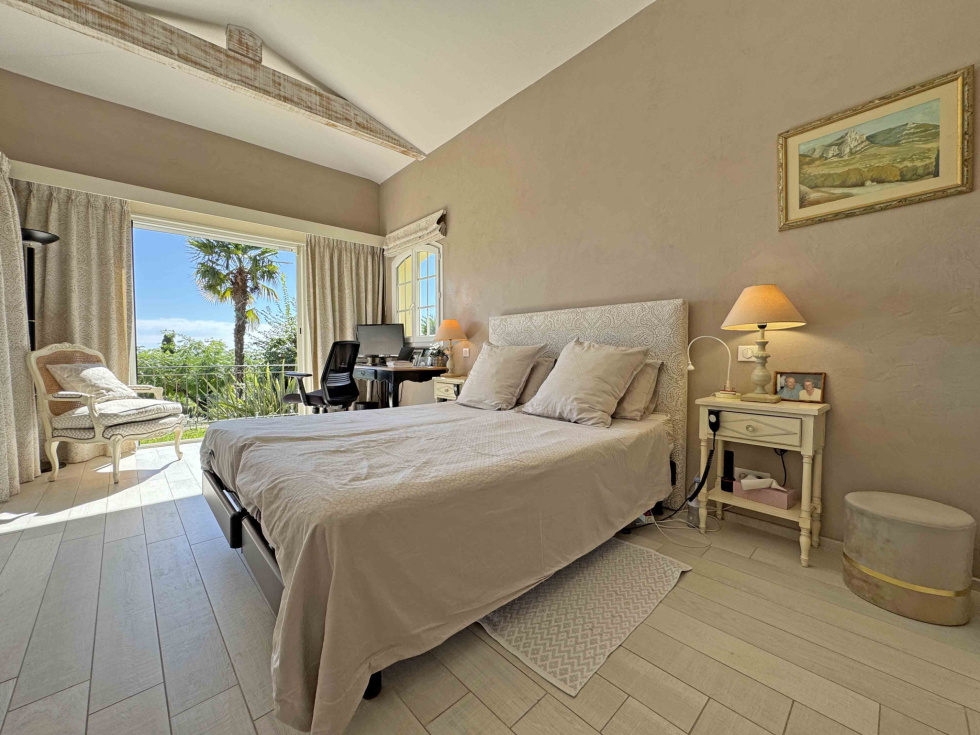 Située dans un domaine fermé, au calme et proche du centre de Vence, villa provençale de 180 m2 comprenant un séjour avec cheminée de 59 m2, cuisine équipée, bureau, chambre avec dressing et salle de douches, chambre avec salle de bains, 2 chambres, salle de douches, buanderie. Vue dégagée jusqu'à la mer. Terrain de 2.000 m2 avec piscine chauffée, terrain de pétanque, garage et abri voitures.