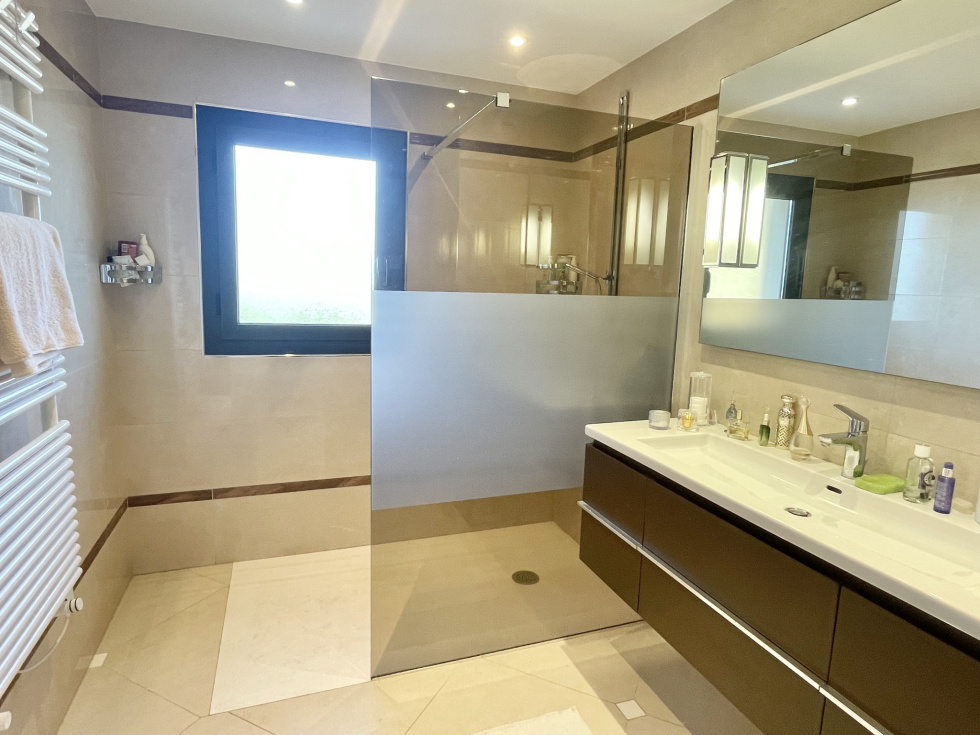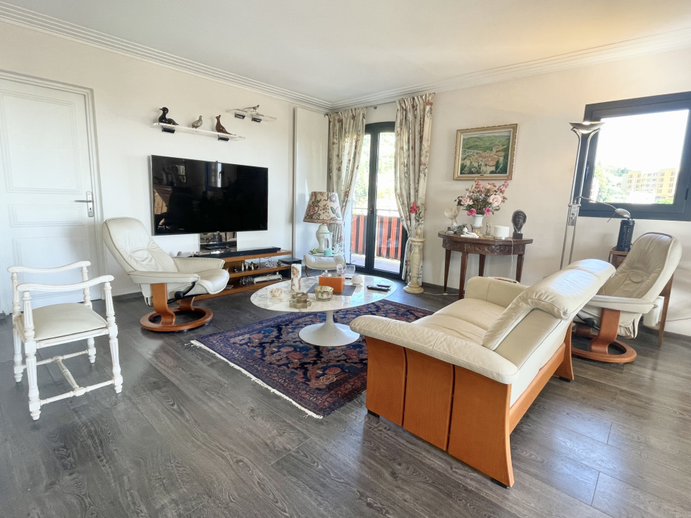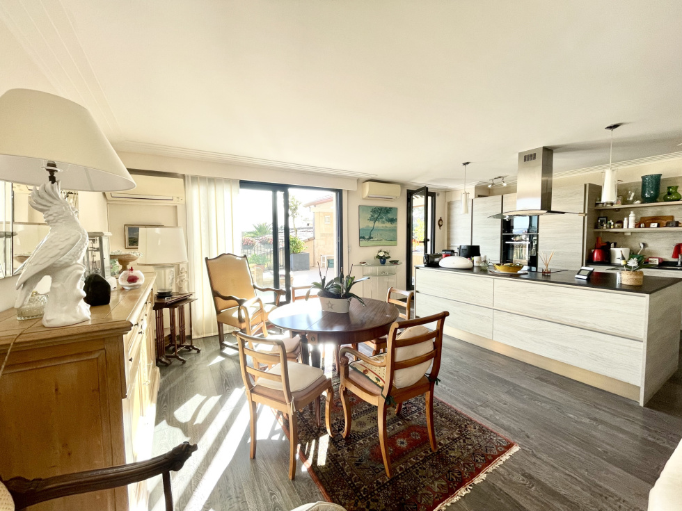 Entièrement rénové avec goût et des matériaux de qualité, ce superbe appartement-villa de 110 m² offre un cadre de vie d’exception à proximité du centre-ville. Il s’ouvre sur une terrasse de 68 m², en partie couverte avec une cuisine d’été bénéficiant d’une vue panoramique imprenable sur la mer, les montagnes et la vieille ville. L’entrée mène à une vaste pièce de vie de 52 m², prolongée par une cuisine moderne et fonctionnelle avec îlot central, pour un espace de réception convivial et lumineux grâce à sa triple exposition. Le plan a été conçu pour préserver deux espaces nuit distincts : •Suite parentale de 17,80 m² ouvrant sur un balcon, avec salle d’eau et WC indépendant, •Deuxième chambre, bureau ou troisième chambre, salle d’eau et WC séparé. Prestations de qualité : climatisation réversible, chauffage central individuel au gaz, grands volumes de rangement, baies double vitrage en aluminium, cuisine très bien équipée, salles de bains au goût du jour. En annexe : parking, cave et grand espace de stockage. Un bien rare à découvrir sans tarder !