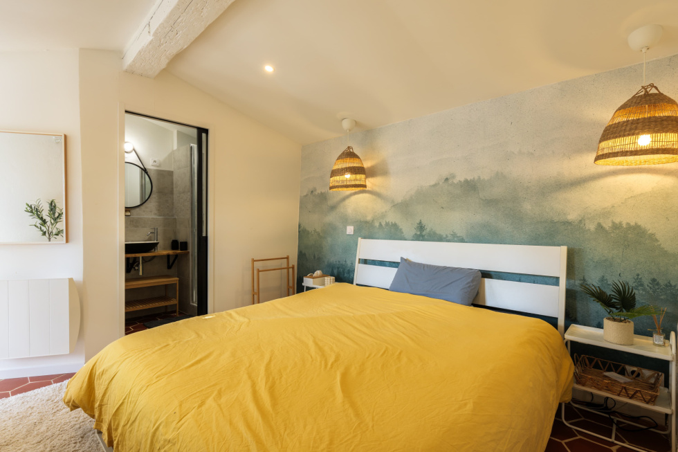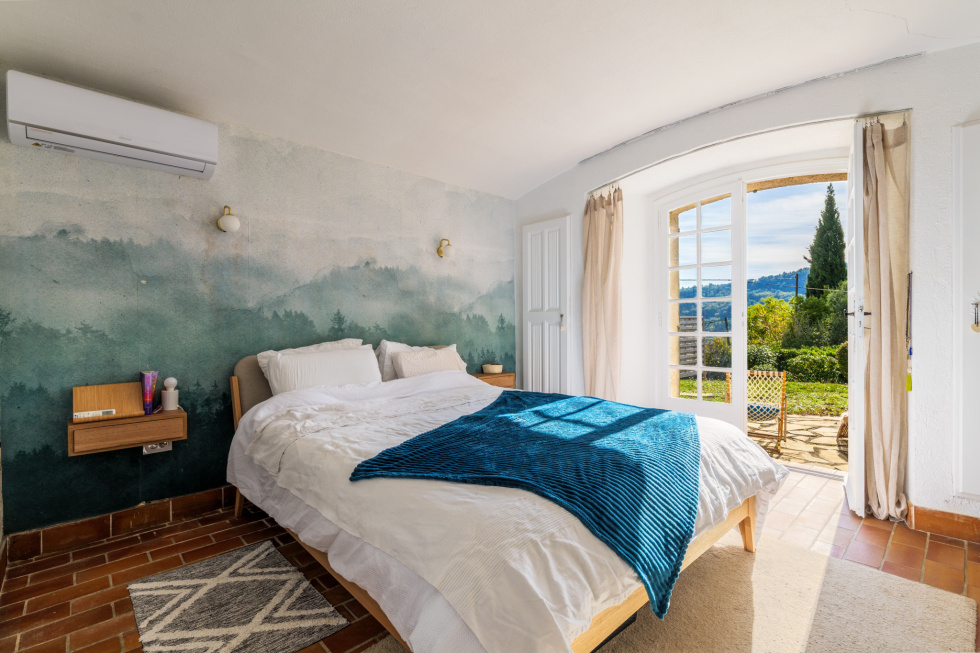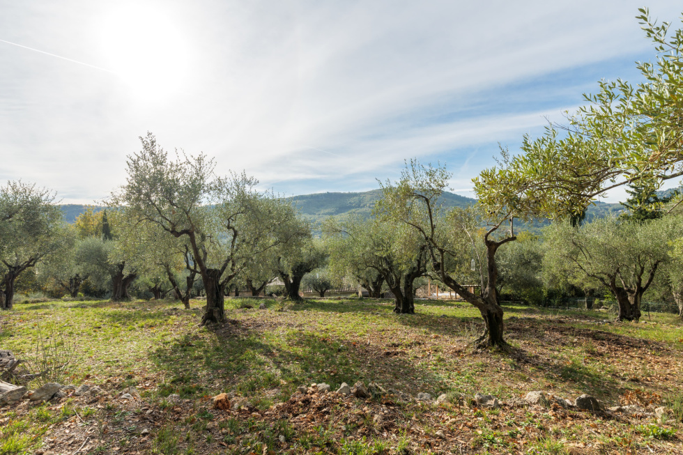 EXCLUSIVITE Dans un environnement rare, préservé et d’un calme absolu, amoureux de calme et de nature, cette propriété nichée au cœur d’une oliveraie est faite pour vous ! Elle se compose d’une villa principale (2 chambres, 2 salles d’eau et un bureau) ainsi que d’un mazet indépendant comprenant une chambre et une salle d’eau. La villa offre de beaux volumes et des prestations soignées (sols en terre cuite, poutres: Une entrée desservant un vaste salon/salle à manger de 48 m² avec cheminée (insert récent), Une cuisine indépendante entièrement équipée, Une belle terrasse en partie couverte avec barbecue, Des toilettes invités, Une suite parentale climatisée de 15 m² avec dressing, salle d’eau neuve et toilettes, Un bureau, Une buanderie/cellier. À l’étage : une seconde chambre climatisée (13 m²) avec sa salle d’eau et toilettes. Le mazet indépendant propose une chambre climatisée avec salle d’eau et toilettes : idéal pour accueillir famille et amis, ou pour développer une activité de chambre d’hôtes. Annexes : atelier, grande terrasse couverte. Le terrain de 6.980m² en restanques, magnifiquement arboré, compte environ 70 oliviers ainsi qu’un avocatier, agrumes, figuier, etc. Vous profiterez également d’un superbe espace piscine avec terrasses en bois, barbecue et plancha. Piscine neuve au sel (12 m x 3). Terrain de pétanque. Prestations : panneaux solaires, climatisation réversible, borne de recharge électrique. Une propriété pleine de charme, offrant une atmosphère unique.Un véritable coup de cœur rare sur le marché !