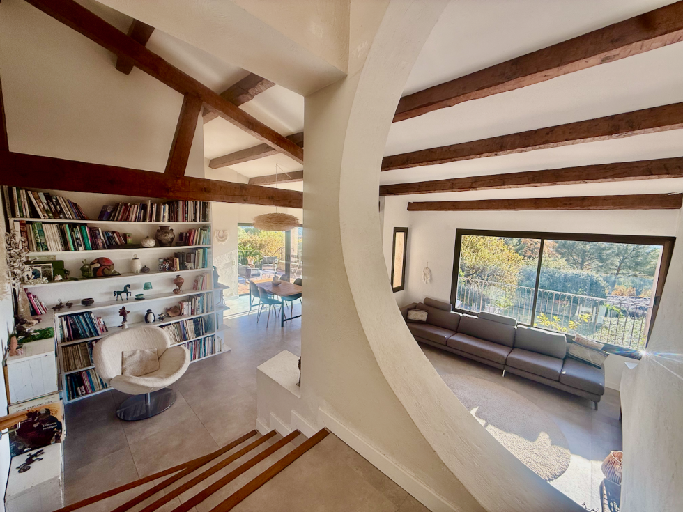Découvrez cette propriété d’architecte au charme unique, idéalement implantée dans un quartier résidentiel paisible, à seulement quelques minutes du village médiéval de Tourrettes-sur-Loup. Exposée plein sud et édifiée sur un terrain d’environ 2 800 m², elle profite d’une vue panoramique exceptionnelle sur la mer Méditerranée et la nature environnante. Dès l’entrée, vous serez séduit par un vaste séjour baigné de lumière, véritable pièce maîtresse de la maison. Les baies vitrées à galandage ouvrent largement l’espace vers l’extérieur, créant un lien harmonieux vers l’extérieur. La cuisine, récemment rénovée et entièrement équipée, s’inscrit dans cette atmosphère conviviale. Elle est prolongée par des espaces annexes modulables – cellier, buanderie ou bureau – permettant une organisation optimale selon les besoins. L’espace nuit se compose d’une suite parentale bénéficiant d’un superbe panorama sur la mer, dotée de sa salle de bains privative et de WC séparés. Deux autres chambres, un bureau, une salle de douche ainsi que des WC indépendants complètent cette partie de la maison. À l’extérieur, une terrasse couverte avec barbecue jouxtant la cuisine et la salle à manger offre un lieu conviviale, idéal pour recevoir. Juste en dessous, la piscine en mosaïque de 10 × 5 m et son pool house promettent de véritables moments de détente. La propriété dispose également d’un vaste sous-sol d’environ 80 m², d’un porche d’environ 20 m² et de plusieurs places de stationnement. Une maison rare qui conjugue élégance, tranquillité et vue mer exceptionnelle. À visiter sans attendre.