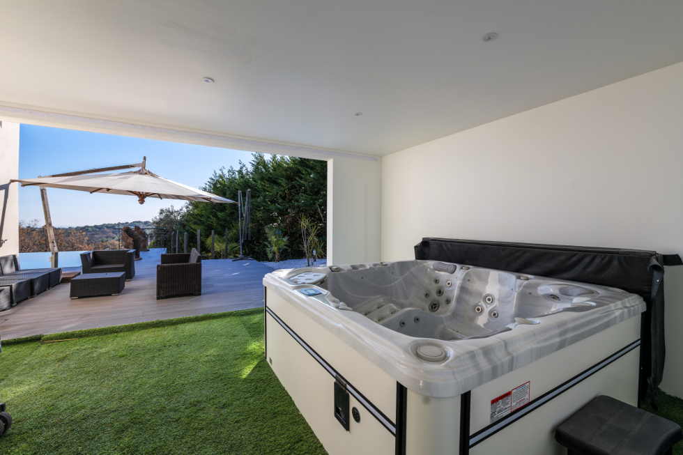 Située dans un secteur prisé de Tourrettes sur Loup, cette villa contemporaine bénéficie d'une localisation idéale, à proximité du village tout en préservant une tranquillité absolue. Sa position dominante offre une vue panoramique sur la Méditerranée et les collines environnantes. Cette villa d'exception s'étend sur un terrain de 2500m². Elle se distingue par sa sublime piscine miroir de 19m de long, complétée par un élégant pool house de 37m² et un espace bien-être couvert avec jacuzzi. Baignée de lumière grâce à son orientation plein sud, cette villa marie harmonieusement espace, confort et accessibilité. Sa construction contemporaine privilégie les équipements haut de gamme. La villa se décompose de la façon suivante : - Rez-de-chaussée : Hall d'entrée spacieux avec espace bureau, 3 chambres élégantes dont une suite parentale ainsi qu'un WC invités et salle d'eau moderne - Rez-de-jardin : Somptueuse suite parentale de 35m² avec salle de bain privative et dressing. Vaste espace de vie de 80m² comprenant salon, salle à manger, cuisine ouverte avec buanderie, WC invités avec lave-mains. Toutes les pieces du rez de jardin ont un accès direct à la piscine. - Prestations extérieures : Garage double, cuisine d'été équipée, espace lounge couvert de plus de 20m², magnifique piscine miroir de 19m de long, terrain de pétanque et jardin paysager L'avis de l'agence : "Cette villa d'exception incarne l'excellence à travers ses finitions raffinées et son attention méticuleuse portée aux moindres détails. Les futurs propriétaires de cette villa pourront certainement se vanter d'avoir l'une des plus belles piscines de Tourrettes"