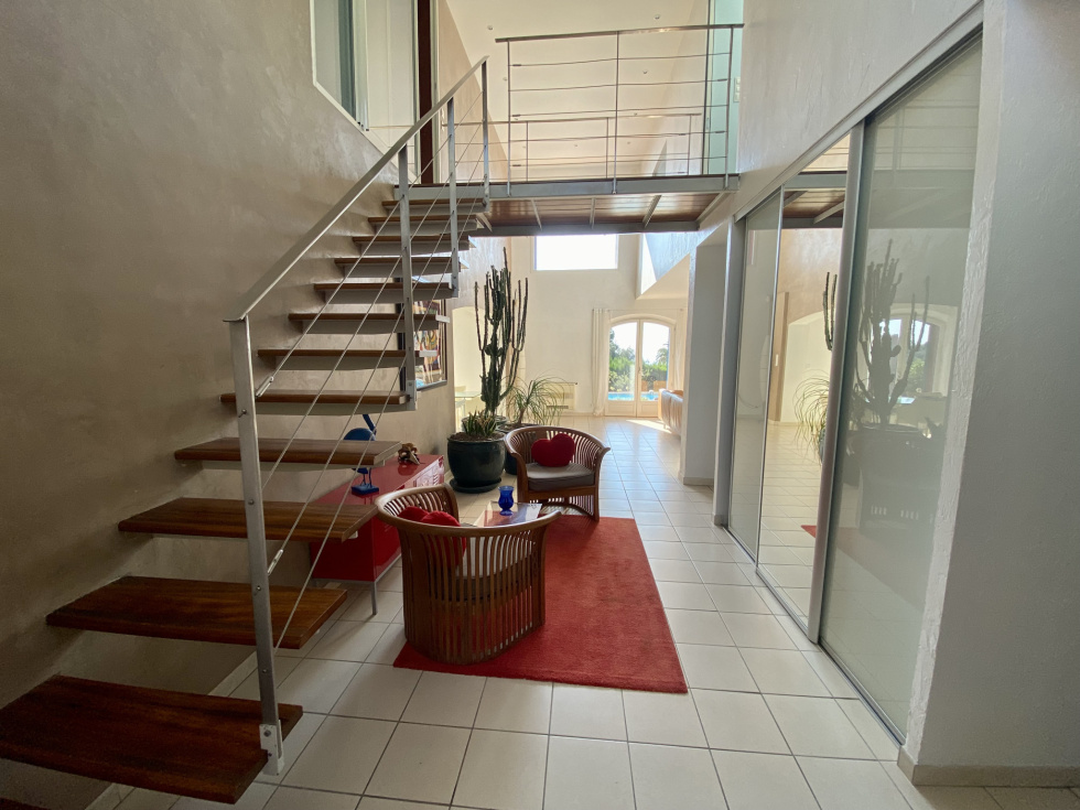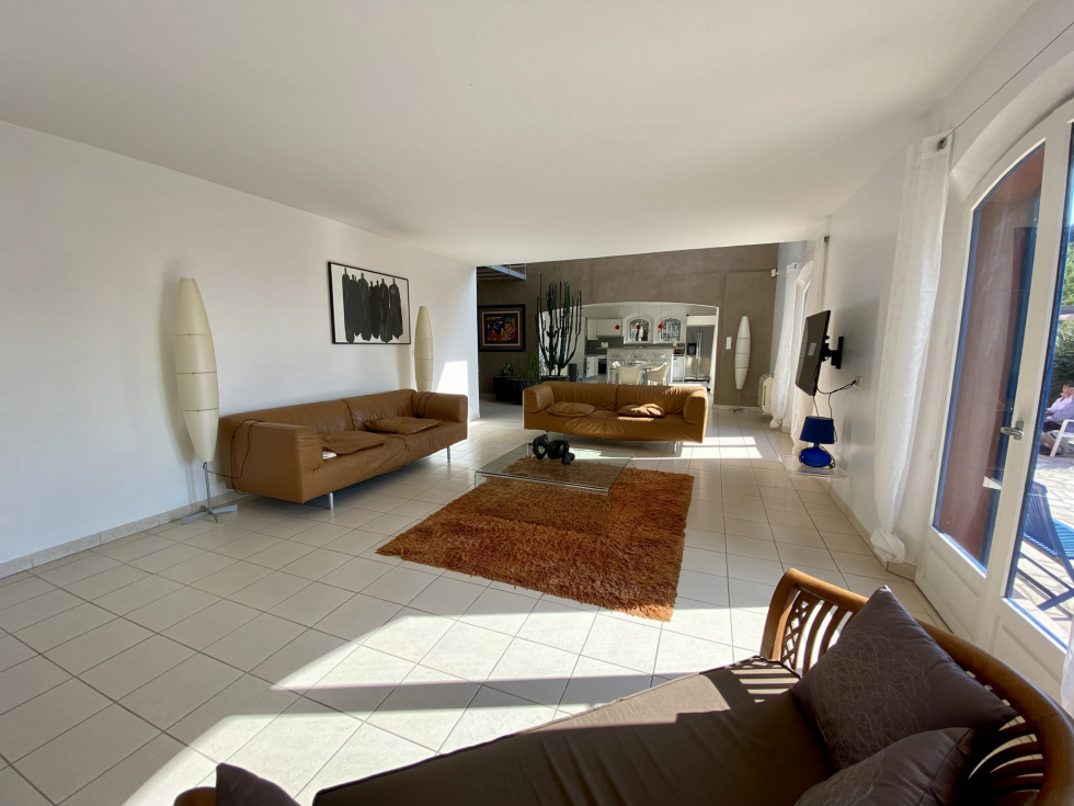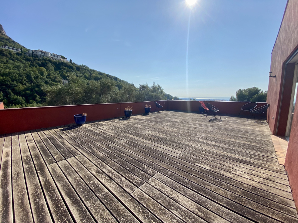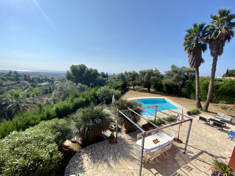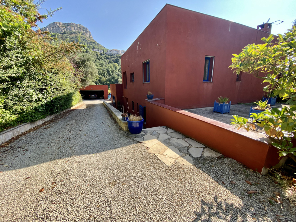 À Vence, à seulement 1 km du centre-ville, découvrez cette superbe villa d’architecte de 230 m², implantée sur un magnifique terrain plat de 1 700 m² agrémenté d’oliviers et d’une piscine. La villa s’organise principalement de plain-pied. Le rez-de-chaussée offre une entrée avec rangements, des WC invités, un vaste séjour de 62 m² sublimé par une cheminée suspendue, ainsi qu’une cuisine entièrement équipée avec un bel espace repas. Un bureau complète cet espace de vie. Un dégagement dessert une chambre avec salle de bains, une buanderie et un cellier. Toujours de plain-pied, la suite parentale d’environ 30 m² dispose d’un dressing, d’une salle de bains et de WC privatifs. À l’étage, une élégante passerelle mène à trois chambres, chacune avec placards, une salle d’eau et des WC indépendants. Le niveau accueille également une exceptionnelle terrasse en bois de 65 m² en roof-top, offrant de superbes vues sur les montagnes et la mer. À l’extérieur, les pièces de vie s’ouvrent sur une grande terrasse et une belle piscine, prolongées par le jardin paysager planté d’oliviers centenaires. En annexes, la propriété dispose d’un garage pouvant accueillir aisément deux véhicules ainsi que d’une cave de 29 m². Un stationnement extérieur est également possible pour plusieurs véhicules. Les informations sur les risques auxquels ce bien est exposé sont disponibles sur le site Géorisques : www.georisques.gouv.fr