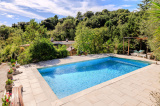 La piscine, idéalement positionnée entre la villa principale et la dépendance, renforce l’autonomie de chaque espace tout en offrant un lieu central de convivialité.