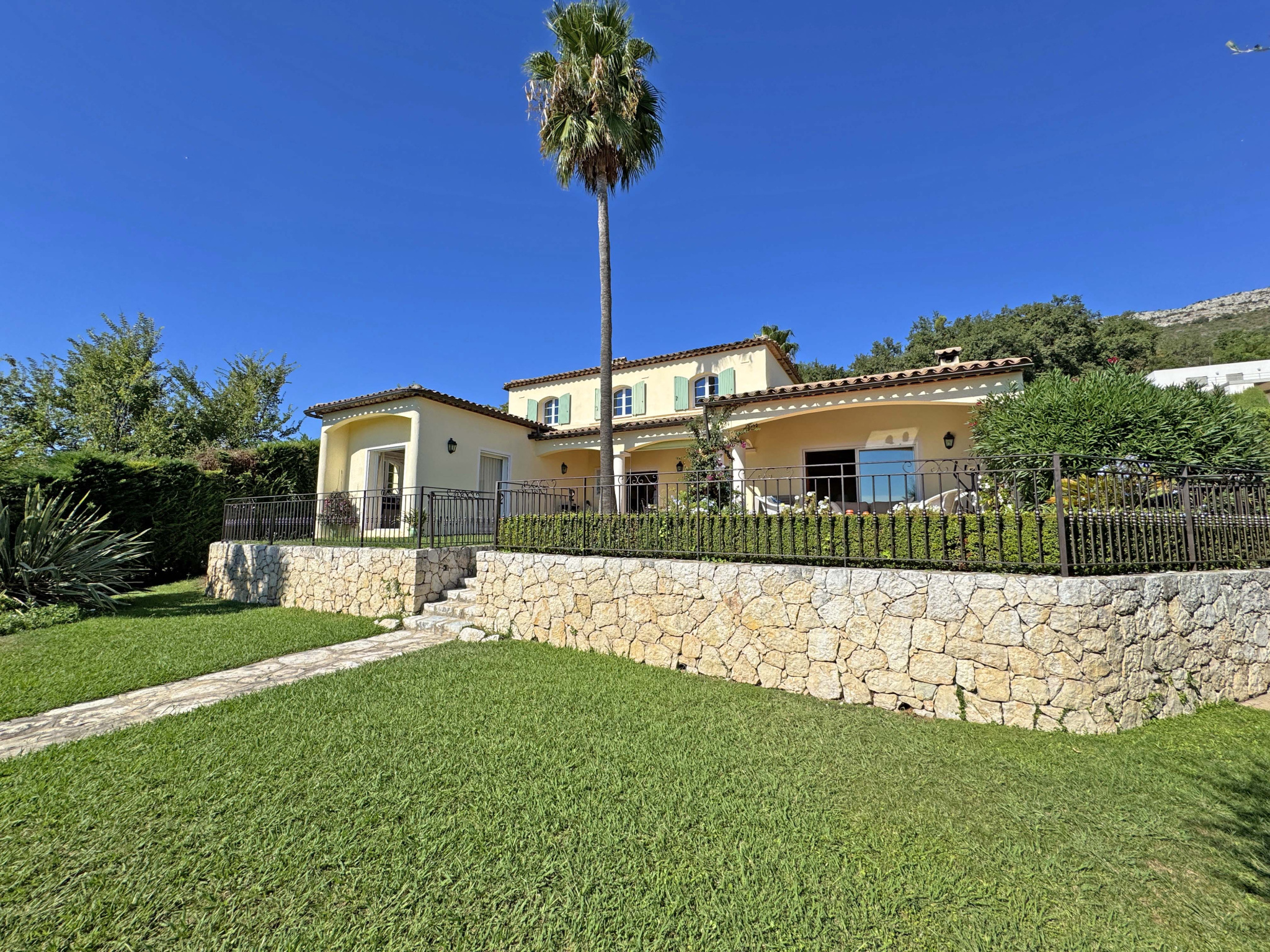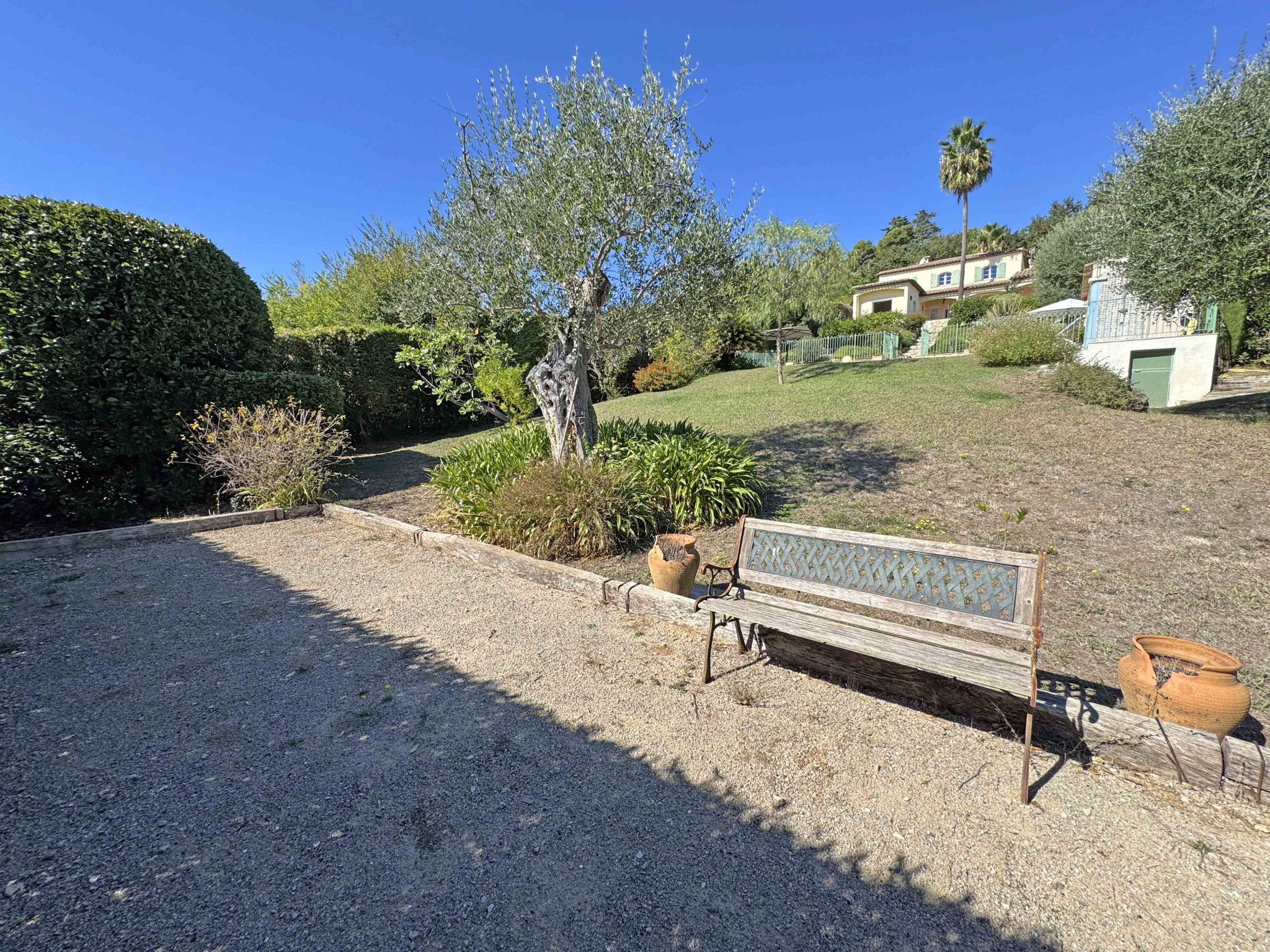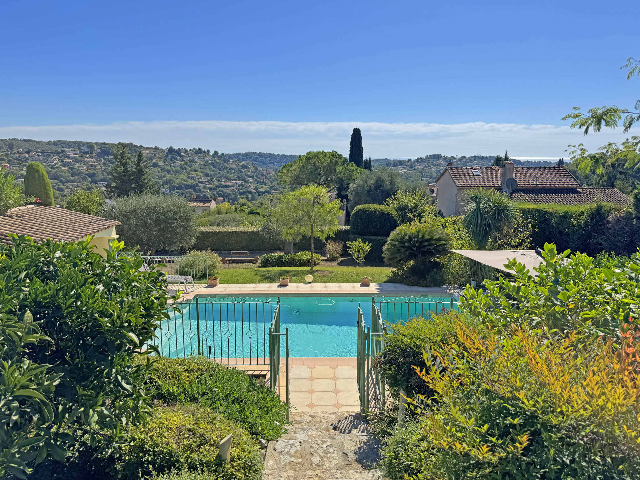SOUS COMPROMIS - Située dans un domaine fermé, au calme et proche du centre de Vence, villa provençale de 180 m2 comprenant un séjour avec cheminée de 59 m2, cuisine équipée, bureau, chambre avec dressing et salle de douches, chambre avec salle de bains, 2 chambres, salle de douches, buanderie. Vue dégagée jusqu'à la mer. Terrain de 2.000 m2 avec piscine chauffée, terrain de pétanque, garage et abri voitures.