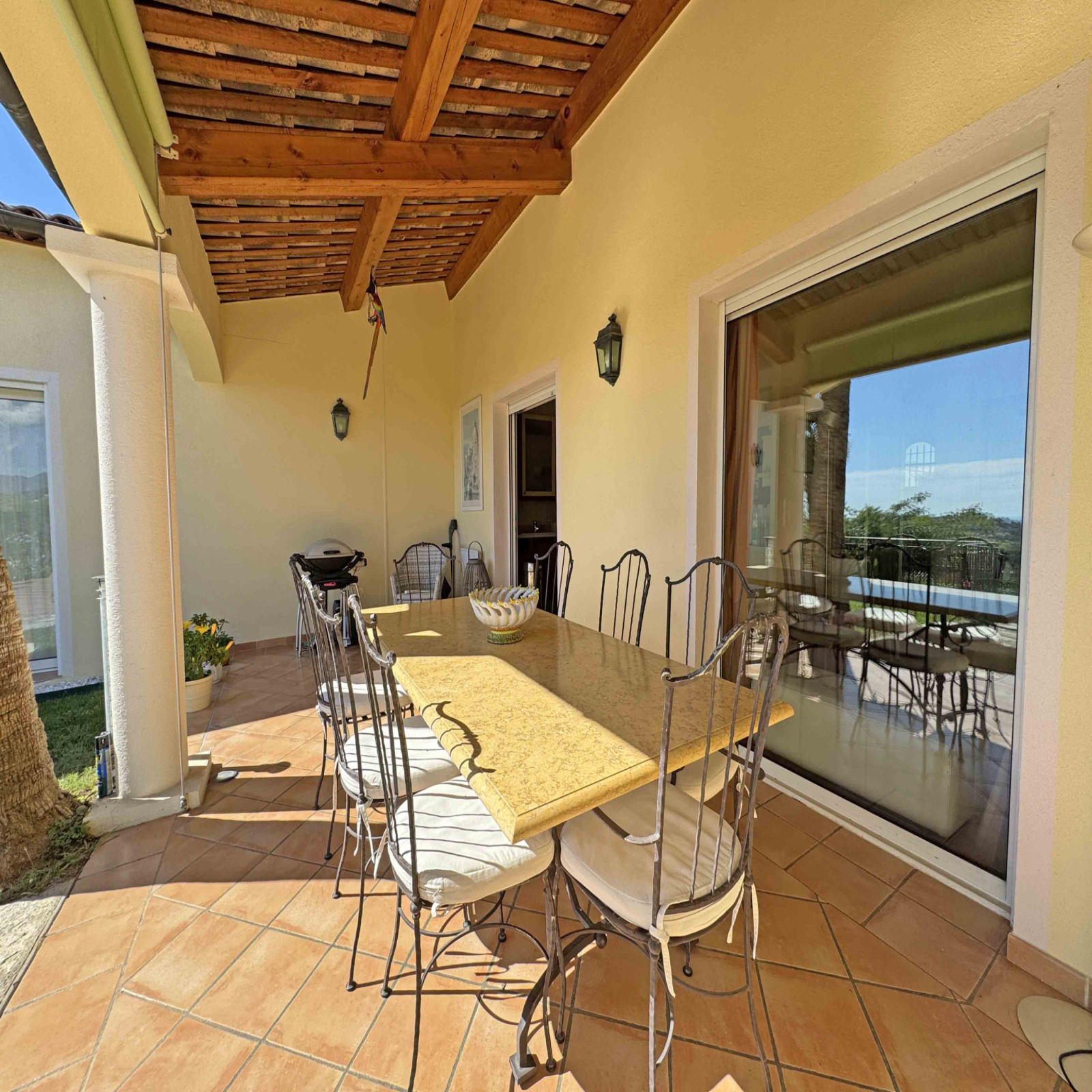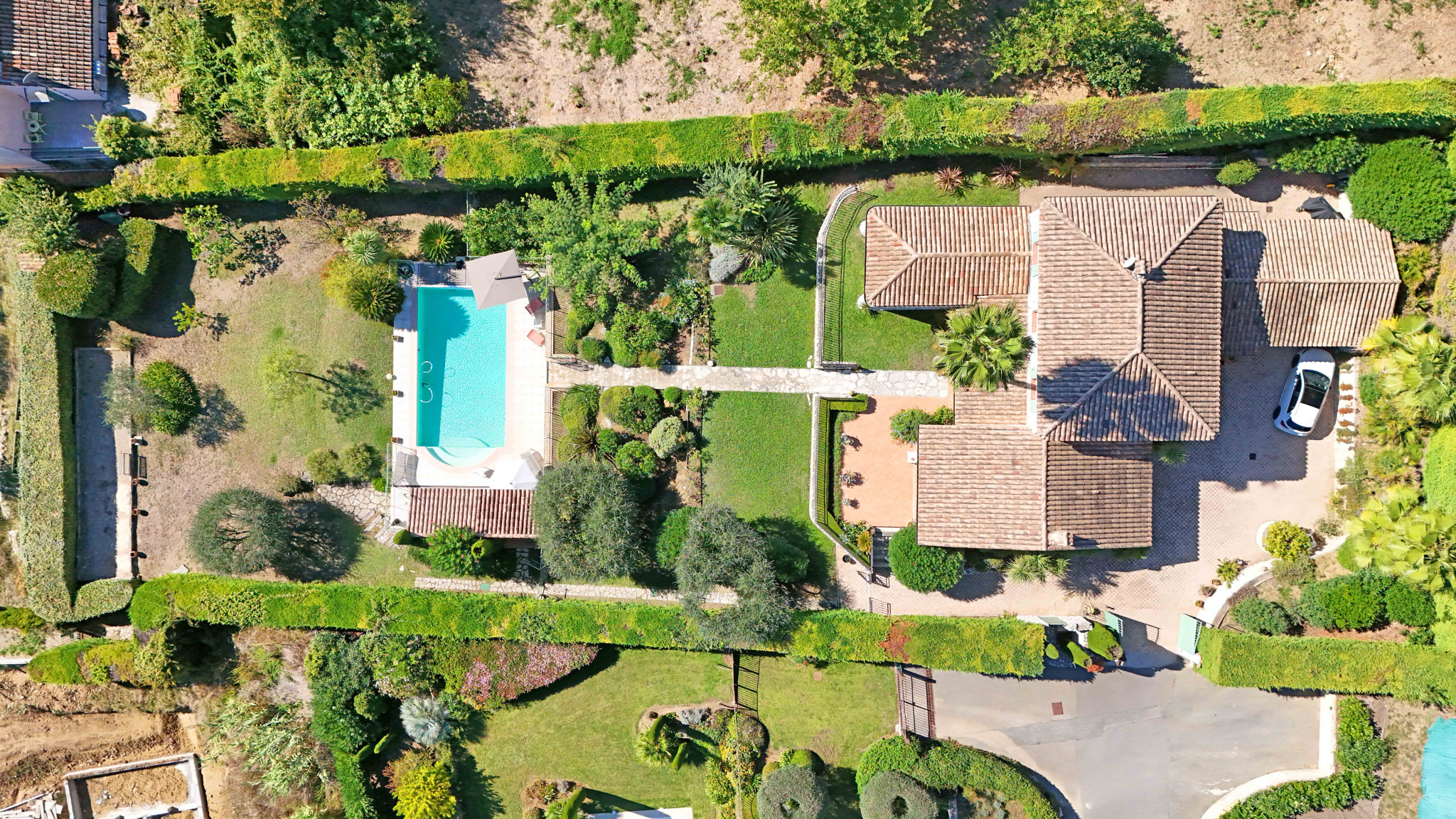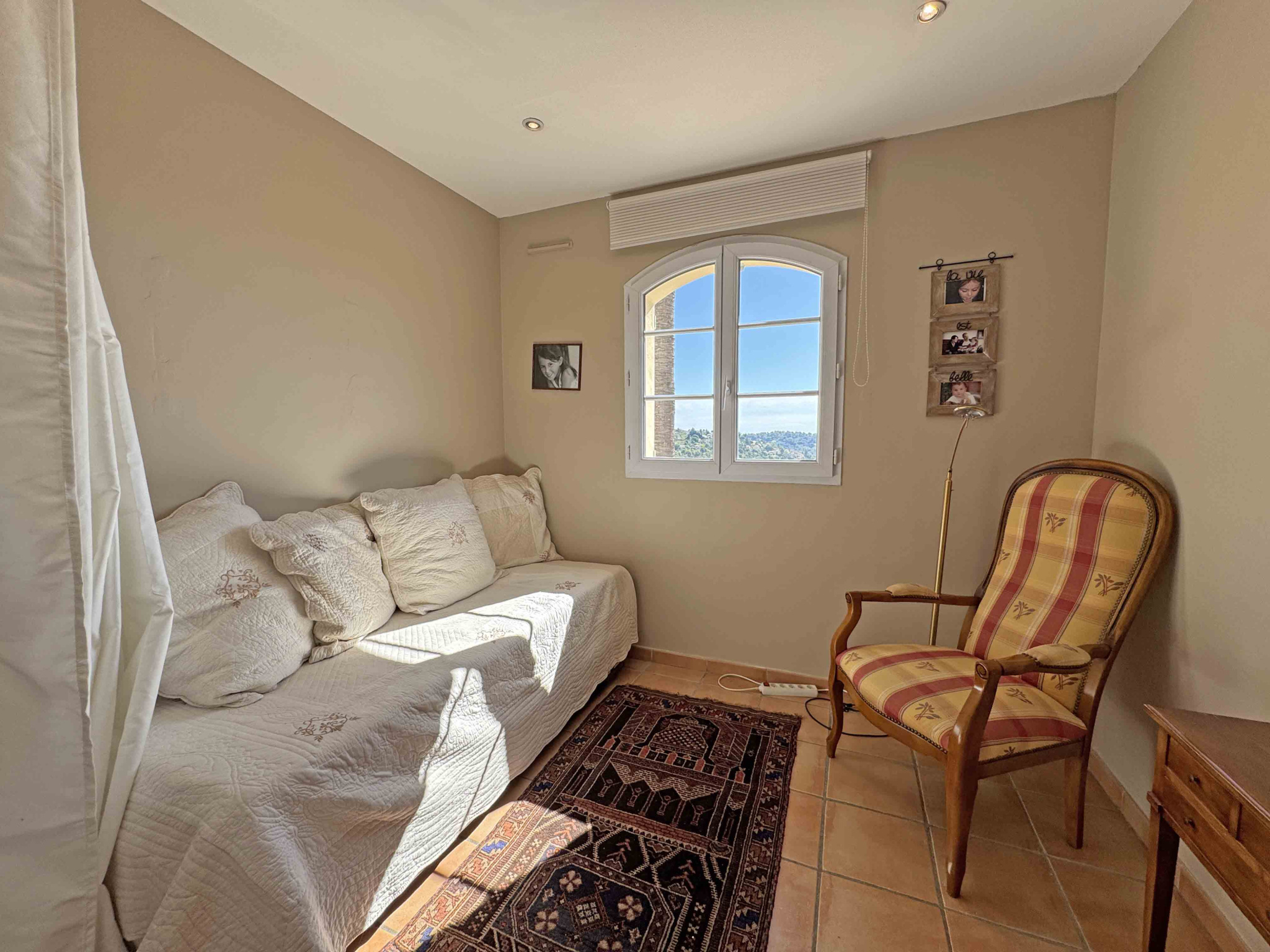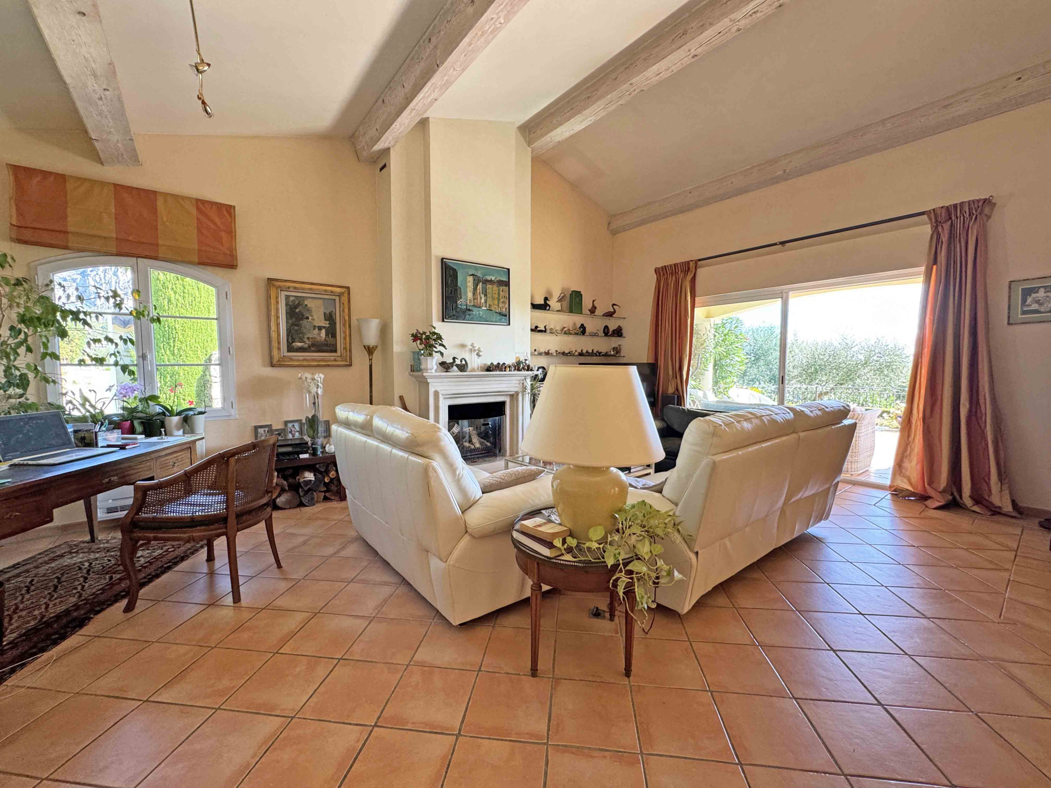 SOUS COMPROMIS - Située dans un domaine fermé, au calme et proche du centre de Vence, villa provençale de 180 m2 comprenant un séjour avec cheminée de 59 m2, cuisine équipée, bureau, chambre avec dressing et salle de douches, chambre avec salle de bains, 2 chambres, salle de douches, buanderie. Vue dégagée jusqu'à la mer. Terrain de 2.000 m2 avec piscine chauffée, terrain de pétanque, garage et abri voitures.