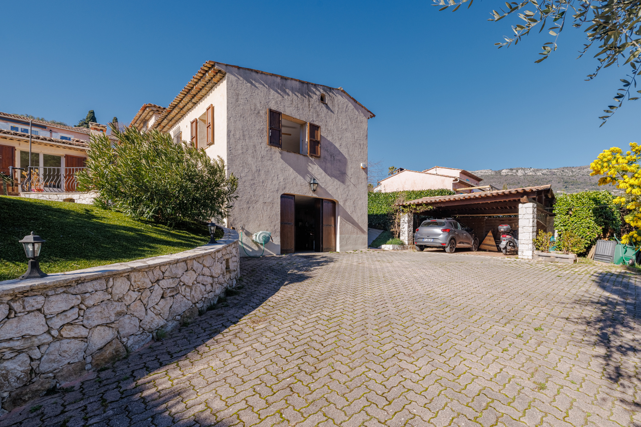 - À l’extérieur, vous profiterez d’une piscine avec une espace repas, parfaitement intégrée à l’environnement, idéale pour savourer les belles journées ensoleillées de la Côte d’Azur. Terasse couverte pour recevoir avec four à pizza. Nombreux stationnements