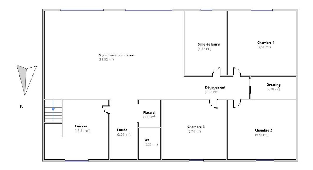 Le séjour avec sa salle à manger est agréable; son ouverture sur la terrasse permet de profiter de la vue dégagée. Un poële à bois permettra de profiter de la chaleur cocooning de l'hiver. La cuisine est indépendante et semi-équipée. Trois chambres lumineuses. Une salle de bains.