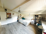 Au demi-étage supèrieur, se trouvent un bel espace ouvert polyvalent (salon TV, salle de jeux, coin lecture), deux chambres et une salle de bains, offrant un agencement parfaitement adapté à une vie de famille.