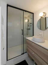 Agencée sur deux niveaux, elle propose des volumes généreux et une circulation fluide :