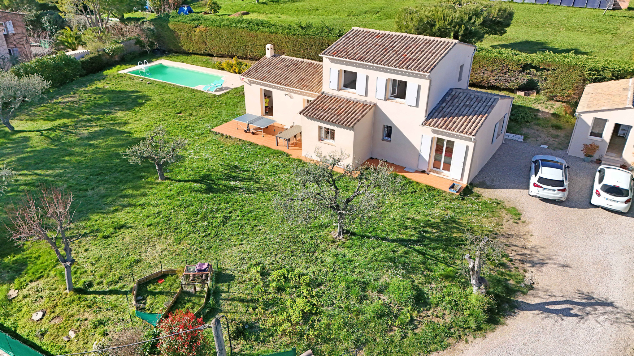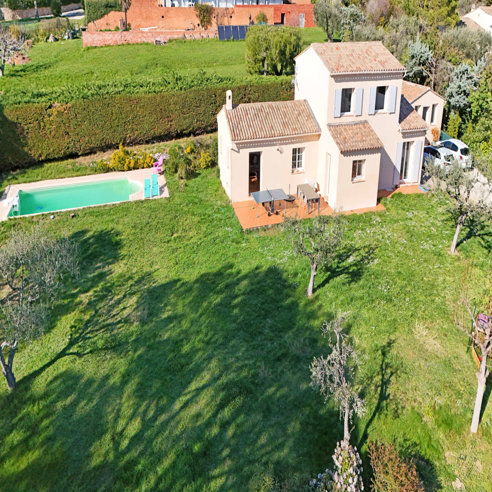 Située dans un quartier calme et résidentiel proche du village, villa de 150 m2 environ sur 2 niveaux incluant un studio indépendant. Jardin plat de 1.670 m2 avec piscine. Exposition Sud. Vue dégagée nature et aperçu mer. Séjour avec cheminée et coin repas, grande cuisine équipée, 2 chambres de plain-pied et une salle de douches. A l'étage, 2 chambres et une salle de douches.