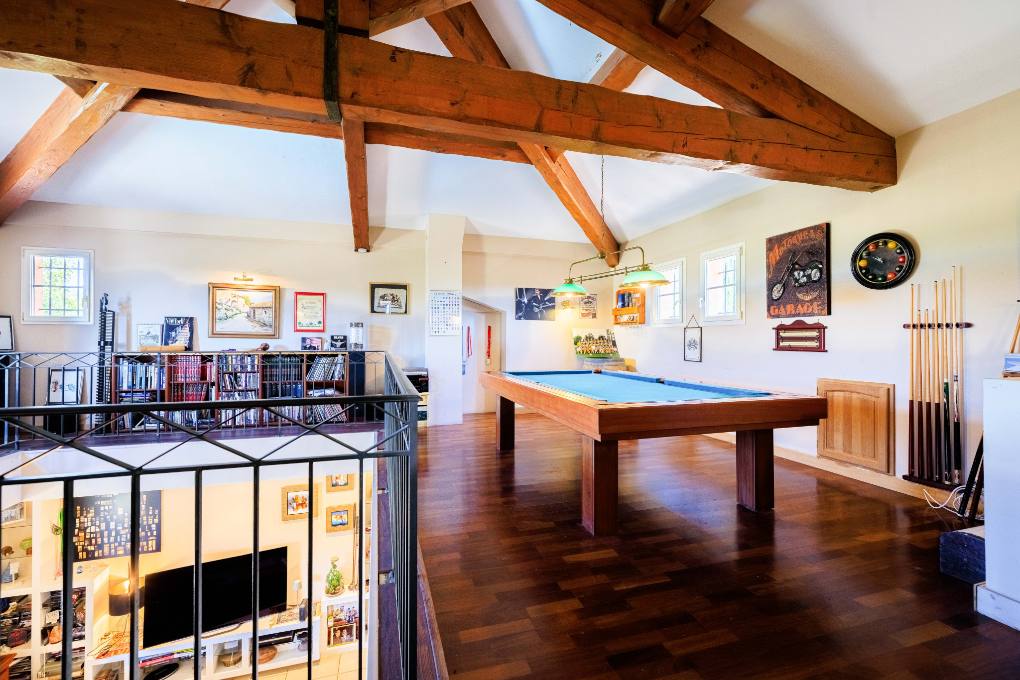 Offrant une généreuse surface habitable d’environ 282 m², cette maison familiale vous accueille avec 6 pièces principales, dont un vaste séjour avec mezzanine, un espace billard ainsi qu’une cuisine équipée communiquant avec une terrasse d’été aménagée formant un lieu convivial à proximité de la piscine.