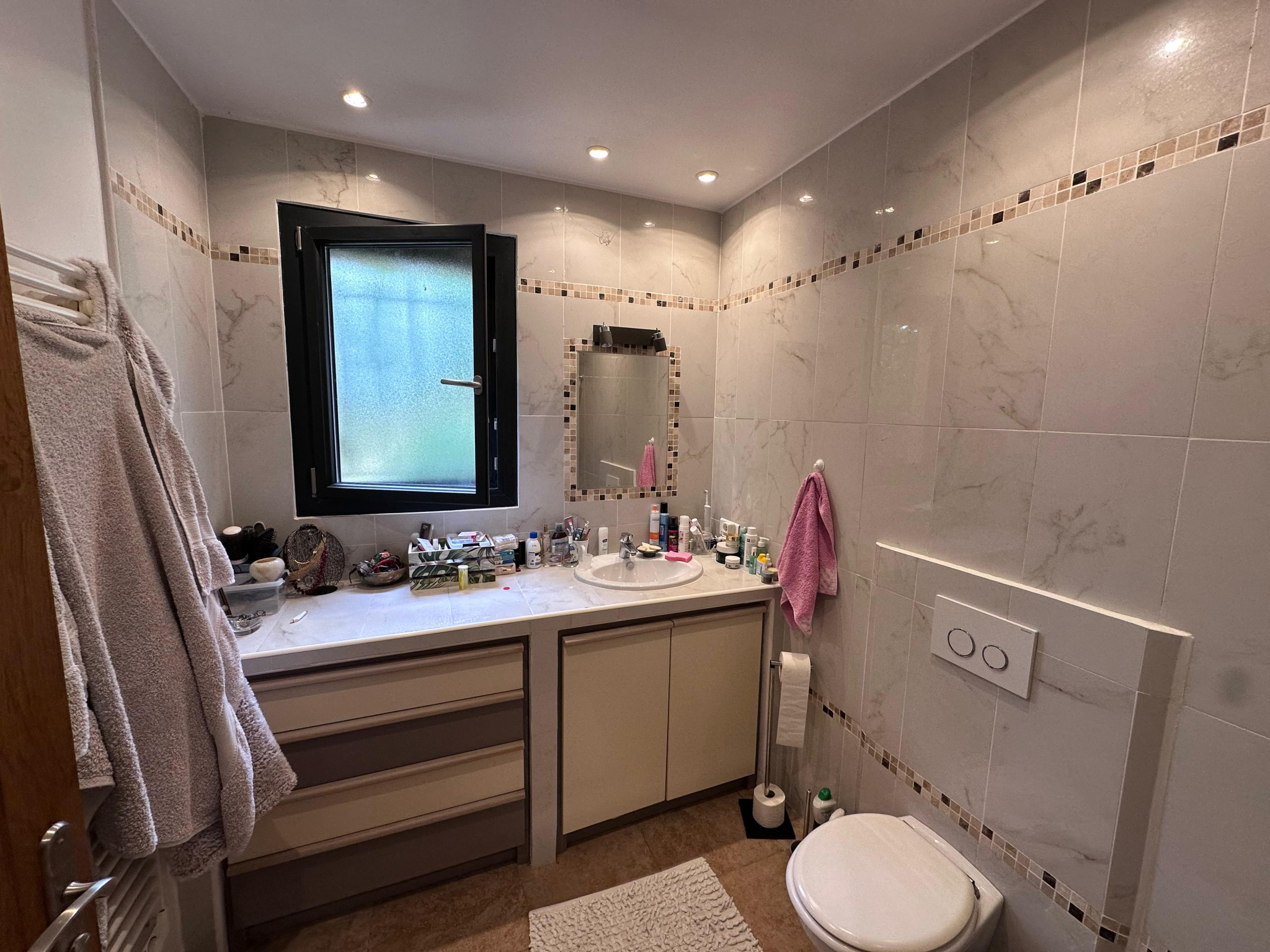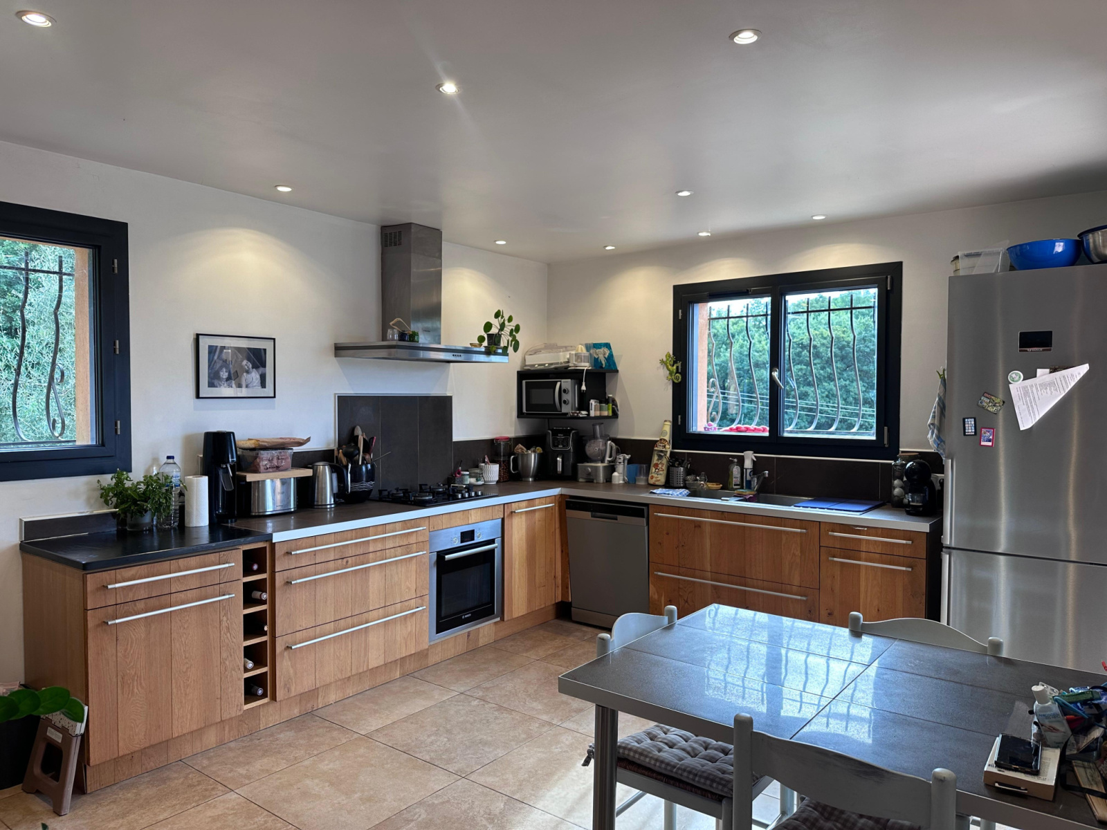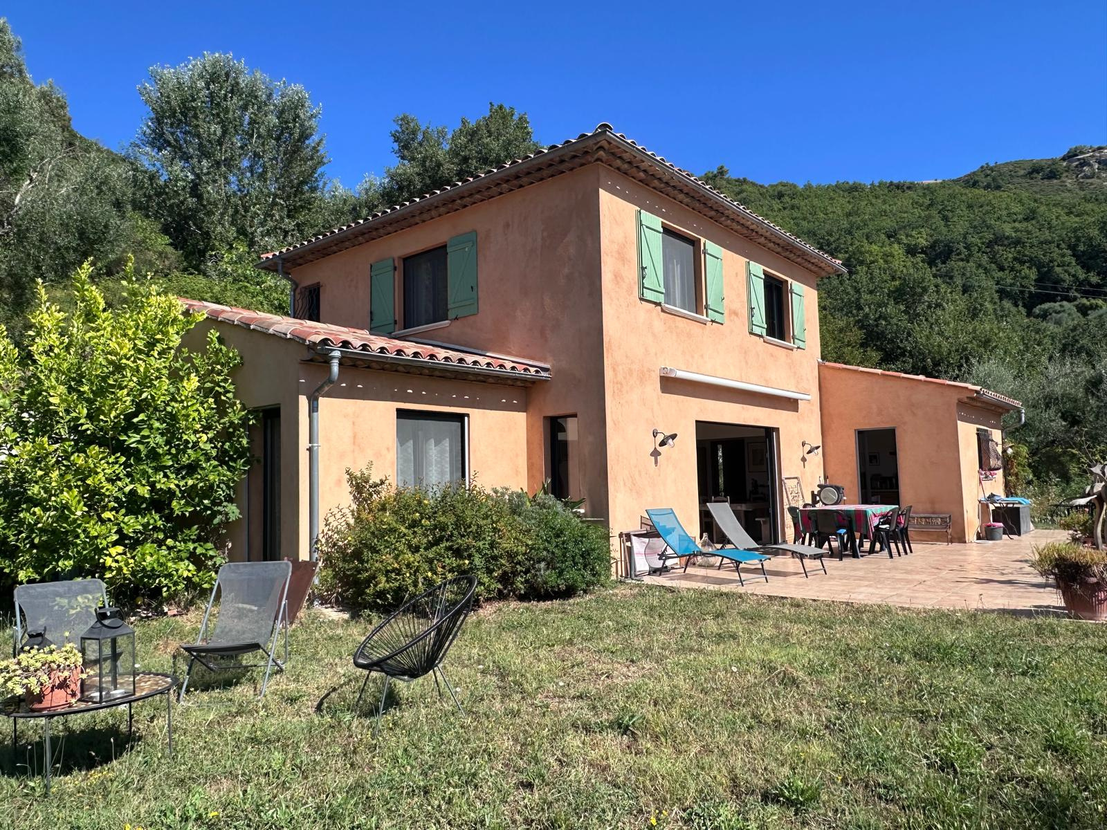 A proximité du village et des écoles, belle villa récente au calme absolu dans laquelle on y trouve cinq pièces principales se décomposant comme suit :