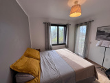 une chambre de maître en suite avec salle de douche-wc et dressing.