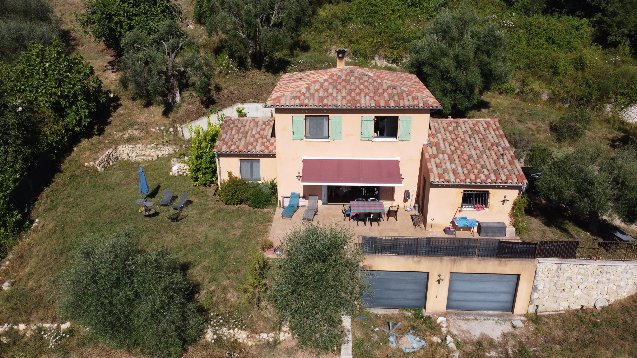 Beau terrain arboré d'oliviers et en partie plat d'environ 950 m², seule la piscine manque à l'appel, son emplacement a été idéalement identifié.