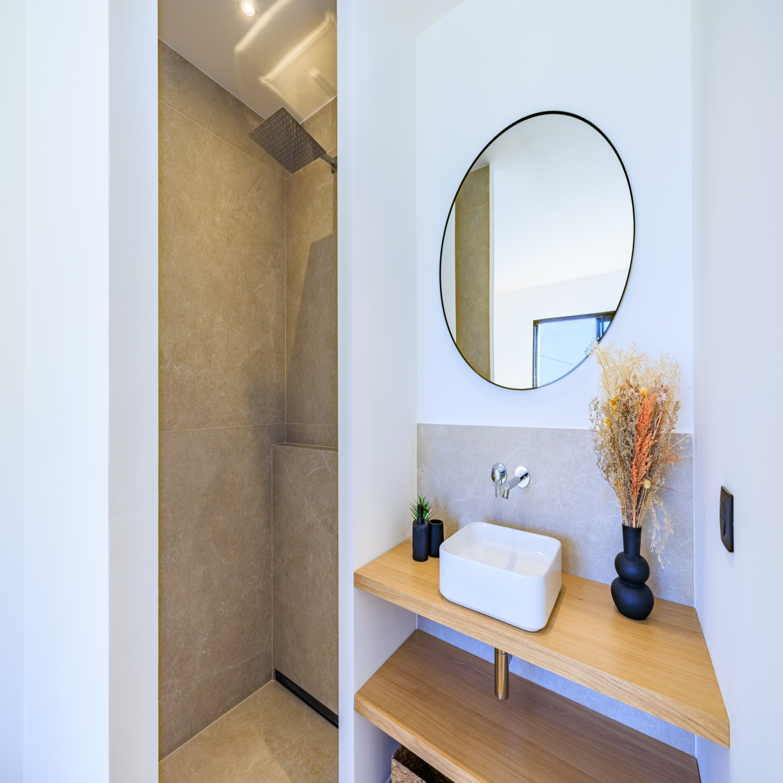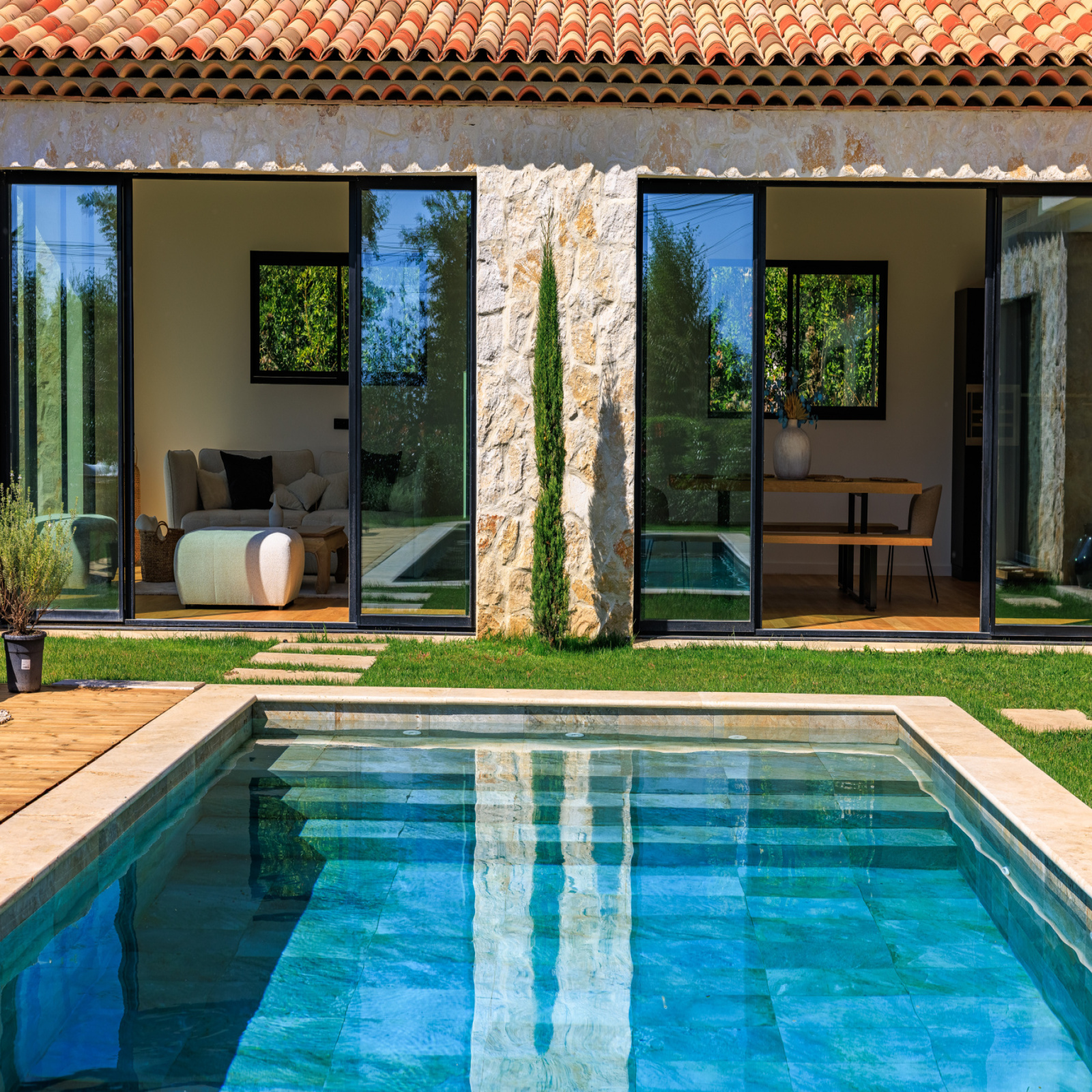 Orientée plein sud-ouest, la villa profite d'une luminosité exceptionnelle tout au long de la journée. Sa conception haut de gamme allie des matériaux nobles à un design minimaliste et intemporel, créant une atmosphère à la fois chaleureuse et épurée.
