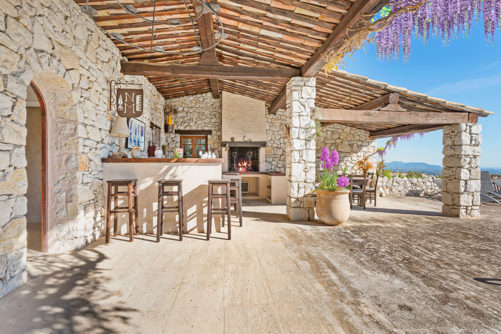 On vous présente une splendide bergerie en pierre, un bien rare dans le secteur du haut standing, offrant une atmosphère sereine et un décor naturel exceptionnel. Implantée au cœur d’un terrain de plus de 5 500 m², cette résidence se distingue par son caractère ancien préservé et par ses vues panoramiques à la fois sur la mer et sur le village.