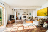 La villa offre de beaux volumes et des prestations soignées (sols en terre cuite, poutres: